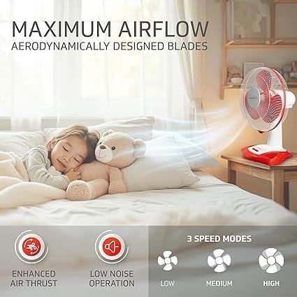 Be the first to review “MOS V-Guard Esfera Table Fan | 3 Speed Settings | 1350 RPM Powerful Motor | Corrosion Resistant Powder-Coated Metal Guards | White Red | 40cm (400mm)”
