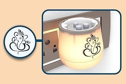SHIVANSH TECHNOLOGY® Electric Kapoor Dani Camphor Burner & Diffuser for Home | Puja Camphor Machine with Night Lamp | Aroma Oil & Incense Burner with Safety Features (Warm White Light, Ganesh-Om)