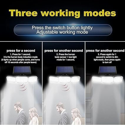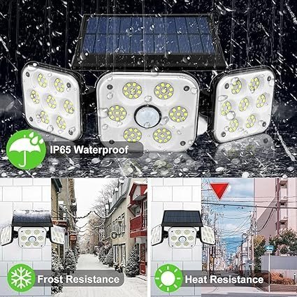 - 【Adjustable 3-Head Solar Light】 The powerful WIDEWINGS solar wall light is equipped with 3 lamp heads that can be rotated vertically or horizontally. Up to 270° beam angle creates a wider range of brightness, brighter than most 70/100/108 LED solar lights. This solar spotlight is ideal for sidewalk, front door, yard, wall, garden, garage.