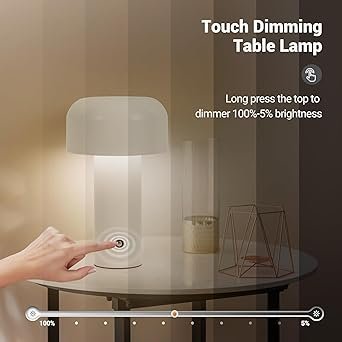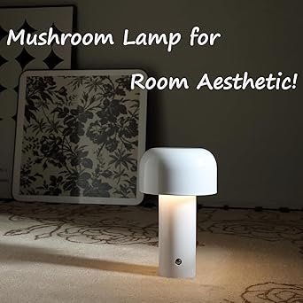 XERGY Plastic Cordless Cute Mushroom Table Lamp, 1200 Mah USB Rechargeable Battery, 3 Lighting Levels, Touch Control, Night LED Light For Bedroom, Office, Or Living Room, White